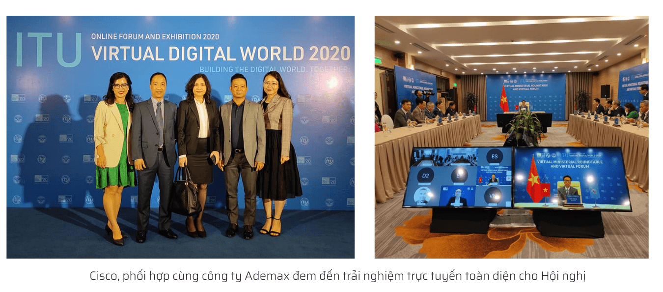 Năm nay, trong bối cảnh đại dịch Covid-19 diễn biến phức tạp, lần đầu tiên, phương thức tổ chức sự kiện được thay đổi, từ trực tiếp sang trực tuyến, khiến ITU Digital World 2020 trở thành sự kiện trực tuyến toàn diện. Cisco, phối hợp cùng công ty Ademax đem đến trải nghiệm trực tuyến toàn diện cho Hội nghị thông qua việc cung cấp công nghệ Webex hiện đại nhất.