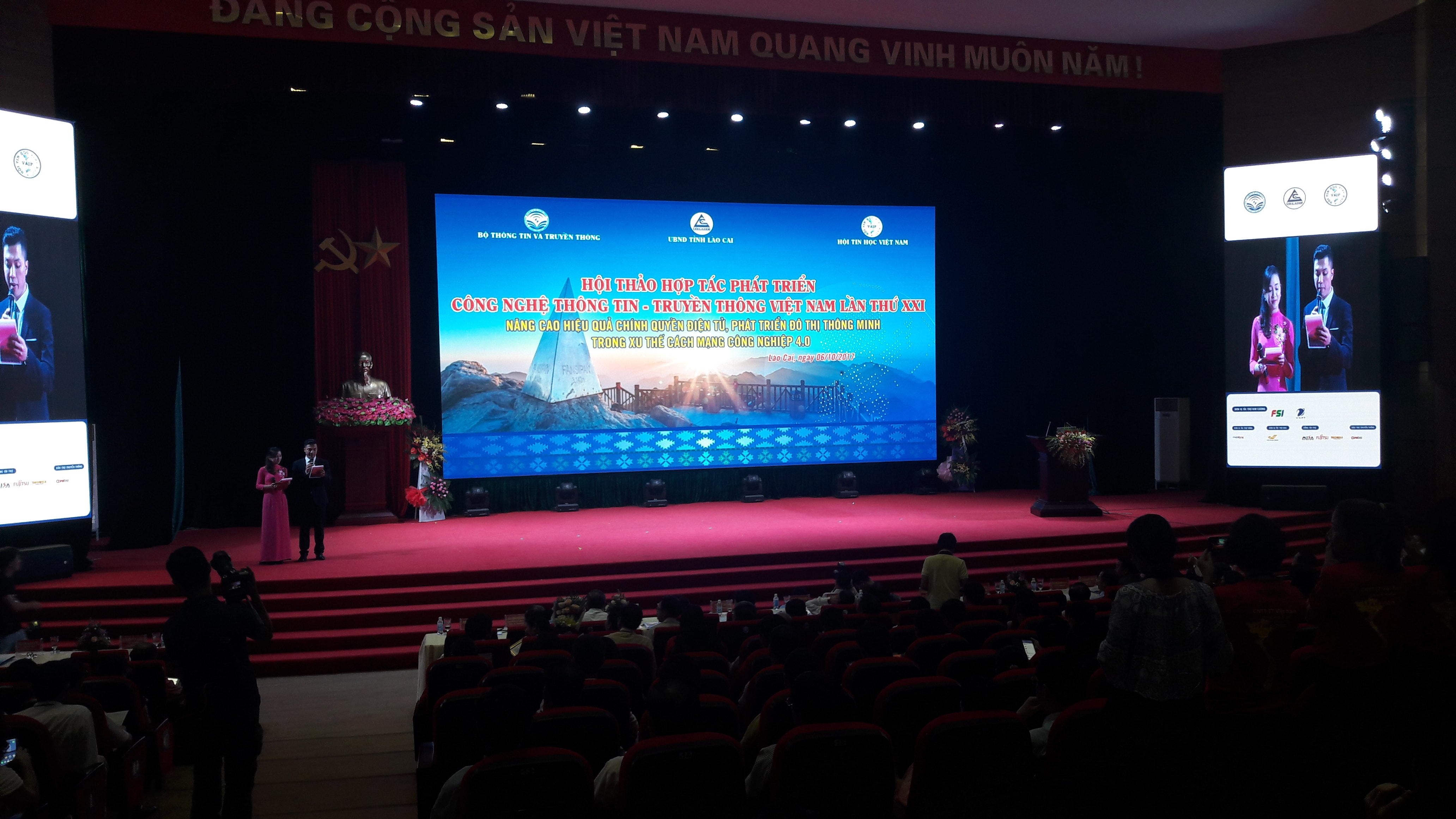 Sáng ngày 7/10/2017 tại Hội trường Trung tâm tỉnh Lào Cai, Hội thảo hợp tác phát triển CNTT-TT Việt Nam lần thứ 21 chính thức khép lại, đánh dấu 3 ngày làm việc tích cực của toàn thể Ban tổ chức cũng như những đơn vị tham dự. Với hơn 800 khách mời đến từ các cơ quan, lãnh đạo, các Bộ ban ngành trung ương, các Tỉnh ủy, Ủy ban cũng như Sở ban ngành tại địa phương; Hội thảo là cơ hội để các nhà quản lý, các tổ chức, doanh nghiệp và cá nhân hoạt động trong lĩnh vực CNTT-TT có cơ hội tiếp xúc, trao đổi, nắm bắt về hiện trạng, nhu cầu, giới thiệu về hoạt động, năng lực của đơn vị mình, tìm kiếm hợp tác, giới thiệu, tư vấn những giải pháp, sản phẩm, kỹ thuật công nghệ mới. Đặc biệt, Hội thảo có sự phát biểu khai mạc của ông Nguyễn Thành Hưng – Thứ trưởng Bộ Thông tin và Truyền thông và ông Lê Mạnh Hà – Phó Chủ nhiệm Văn phòng Chính phủ.