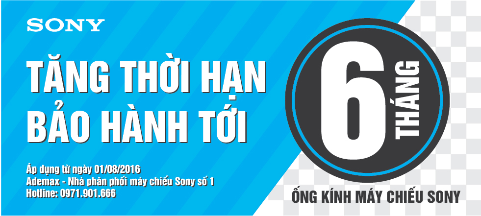 Cụ thể, kể từ ngày 01/08/2016, khách hàng mua máy chiếu Sony từ nhà phân phối Ademax, công ty sẽ áp dụng chính sách bảo hành đèn máy chiếu (Projector Lamp) lên đến 180 ngày (thay cho 90 ngày như trước đây).