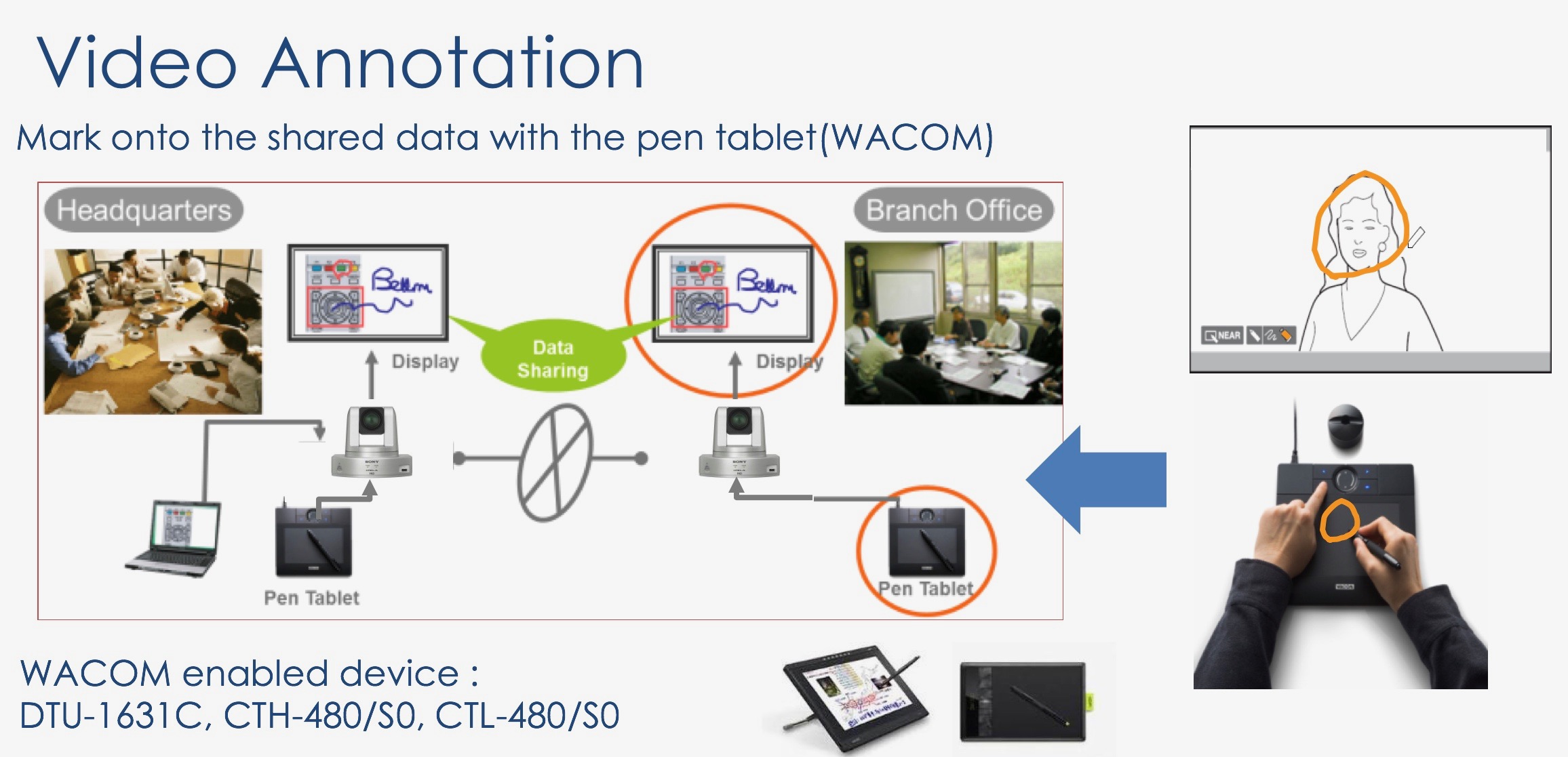 Video Annotation là công nghệ nổi bật cho phép viết/vẽ lên phần nội dung/video trên các thiết bị tương thích với các thiết bị bảng vẽ Wacom để tạo chú thích video trực tiếp trên màn hình để trình chiếu tài liệu: Full Screen, Picture-in-picture, Picture and picture hoặc slide -by-slide chia màn hình. Công nghệ Annotation là tính năng vô cùng hữu ích trong các ứng dụng y tế hay giáo dục khiến sự tương tác hiệu quả hơn.