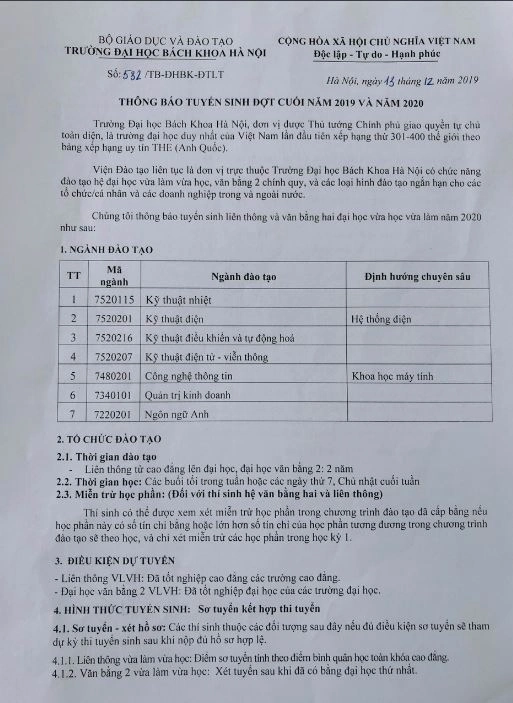 THÔNG BÁO TUYỂN SINH ĐẠI HỌC LIÊN THÔNG, ĐẠI HỌC VĂN BẰNG 2 ĐỢT CUỐI NĂM 2019 VÀ NĂM 2020 14/12/2019 Tin tức Chia sẻ: