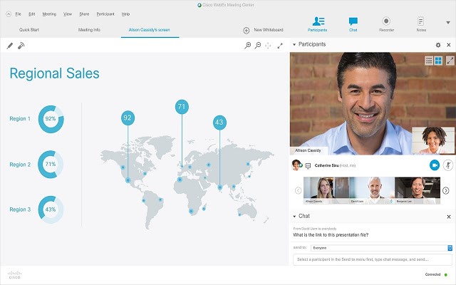 Các giải pháp Cisco Webex được thiết kế phù hợp với những phương thức mà người dùng gặp gỡ, trao đổi, hội họp và chia sẻ thông tin nhằm mang đến khả năng cộng tác không giới hạn giữa con người với con người. Không chỉ có vậy,các giải pháp được xây dựng khớp nối với quy trình, cách thức và hoàn cảnh công việc của bất kì ai. Người dùng có thể hội họp, cộng tác, chia sẻ dữ liệu với các đội nhóm khi đang di chuyển, trong một không gian mở, khu vực giải trí thậm chí ngay cả trong quán cà phê giống như cách họ vẫn cộng tác trong cùng một phòng họp.