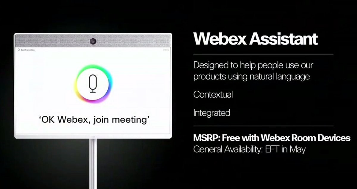 Nhận ra được điều này, Cisco đã áp dụng trí tuệ nhân tạo trong cả hệ thống phần cứng cũng như phần mềm của Webex nhằm mang đến trải nghiệm cộng tác ngày càng tốt hơn với những cải tiến lớn bao gồm công nghệ nhận diện khuôn mặt, loại bỏ tiếng ồn cũng như những “người máy” bot trả lời tự động giúp người dùng tự động hóa các tác vụ như lên lịch các cuộc họp, đặt địa điểm họp,chia sẻ tài liệu hình ảnh hay nhắc lịch làm việc.