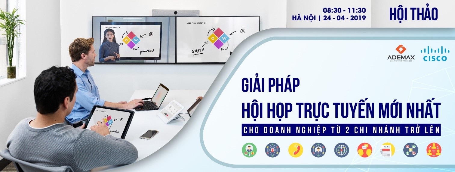 Hội nghị truyền hình – xu hướng họp trực tuyến của các doanh nghiệp trong quá trình chuyển đổi số. Tiếp nối chương trình Cisco Connect 2019 – sự kiện công nghệ lớn nhất trong năm được tổ chức tại các nước trong khu vực ASEAN, chuỗi Seminar Giải pháp hội họp trực tuyến do Cisco & Ademax tổ chức chính thức khởi động hội thảo đầu tiên ngày 24/4/2019 tai Trung tâm trải nghiệm Hội nghị truyền hình Ademax Hà Nội. Chương trình được thiết kế dành cho các chủ doanh nghiệp, giám đốc và quản lý hành chính nhân sự, IT Manager, tạo cơ hội để các nhà quản lý trải nghiệm sâu hệ thống giải pháp Hội nghị truyền hình cụ thể ứng dụng riêng cho doanh nghiệp…