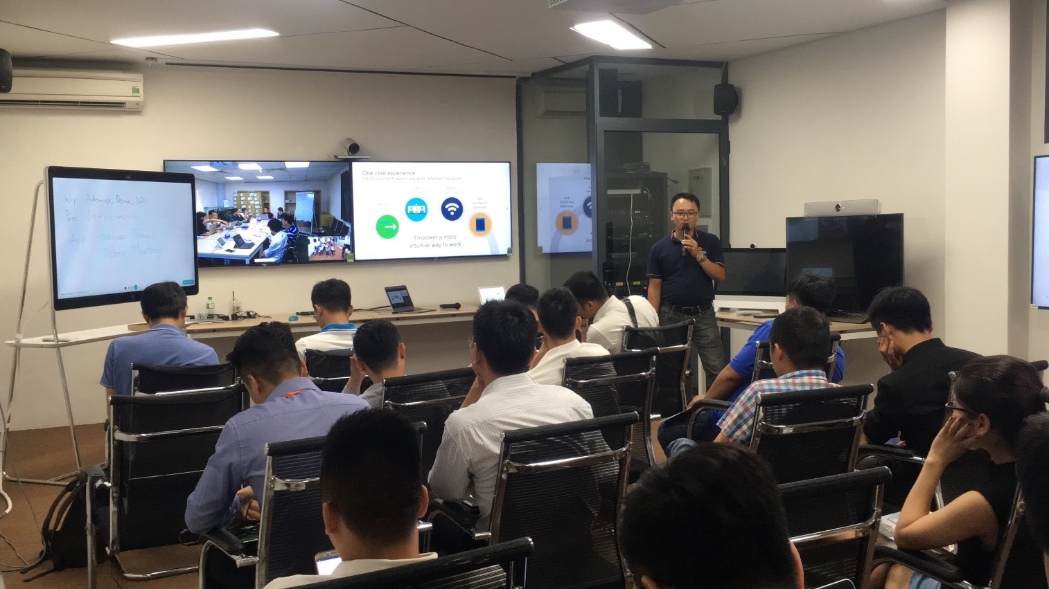 Hội thảo Giải pháp hội họp trực tuyến cho doanh nghiệp từ 2 chi nhánh trở lên là hoạt động trải nghiệm thực tế một cuộc họp trực tuyến từ thiết bị di động cá nhân đến thiết bị phòng họp cá nhân, trình diễn các tính năng trong cuộc họp như chia sẻ nội dung, điểu khiển cuộc họp, thêm người mới vào cuộc họp, lưu trữ nội dung đã chia sẻ trong cuộc họp…Ngoài ra người tham gia còn được trải nghiệm những tính năng thông minh mang tính gợi mở cho một môi trường hội họp tương tác trong tương lai: Assistant,Chat bot, tương tác bằng Webex Board.