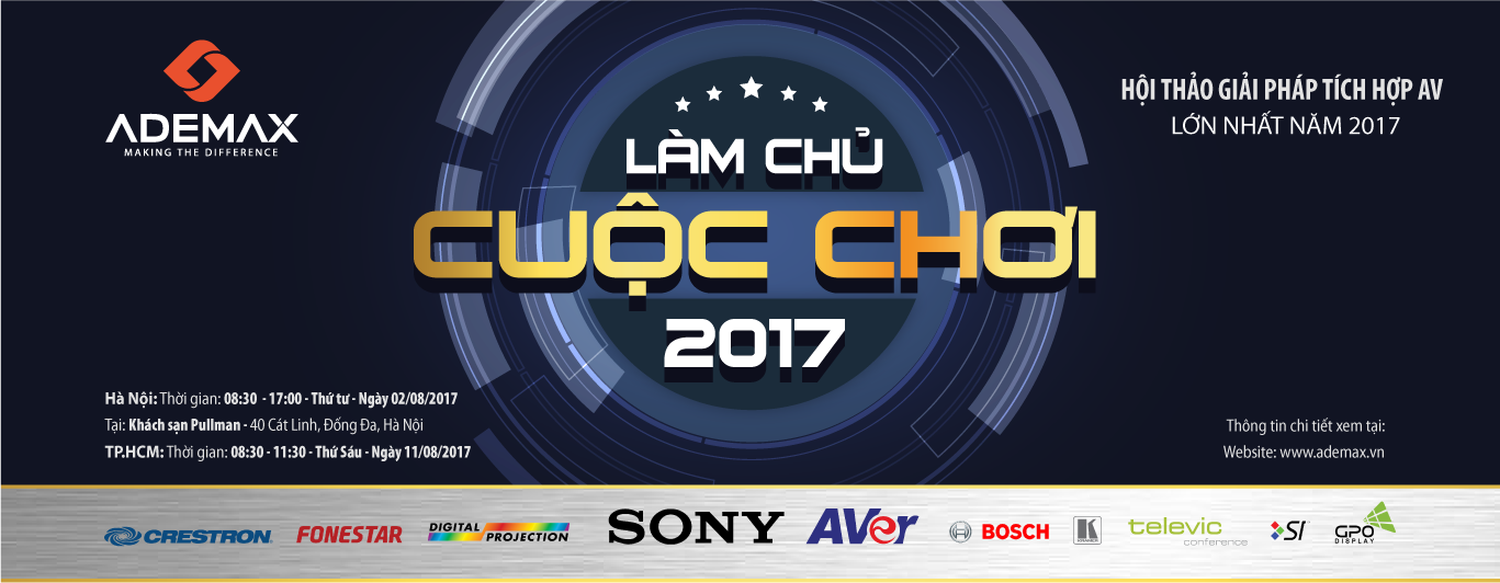 Với mong muốn mang lại những giải pháp công nghệ tích hợp AV hiện đại và phù hợp nhất cho từng loại hình doanh nghiệp, Ademax sẽ tiến hành tổ chức buổi hội thảo mang tên “LÀM CHỦ CUỘC CHƠI 2017” – các khu vực tương tác được thiết kế như một mô hình doanh nghiệp thu nhỏ giúp khách mời có những trải nghiệm chân thực nhất và bằng những dẫn chứng “người thật việc thật”, Ademax hy vọng sẽ mang lại cho khách mời cái nhìn mới toàn diện hơn về việc ứng dụng những giải pháp công nghệ vào việc vận hành bộ máy doanh nghiệp.