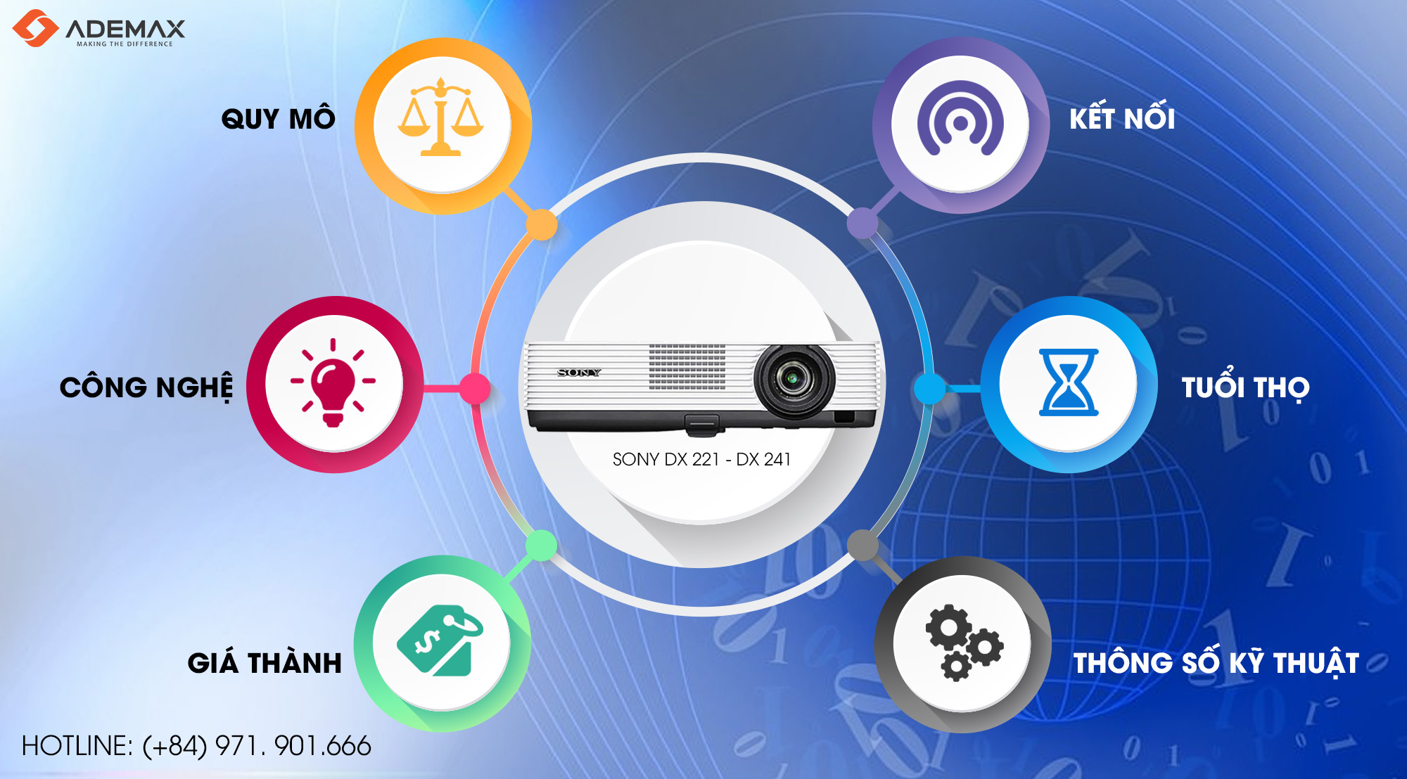 Với những yêu cầu trên, hai dòng máy chiếu của Sony VPLDX221 và DX241 là sự lựa chọn tối ưu cho các trường học và cơ sở đào tạo giáo dục. Cường độ sáng từ 2800 – 3300 ansilumens, với độ tương phản vừa đủ 4000:1, độ phân giải của công nghệ XGA, DX221 và DX241 của Sony mang đến khả năng trình chiếu vượt trội.