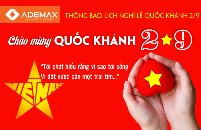 Nhân dịp Ngày Quốc Khánh 02/09, ADEMAX xin thông báo kế hoạch nghỉ lễ công ty như sau: