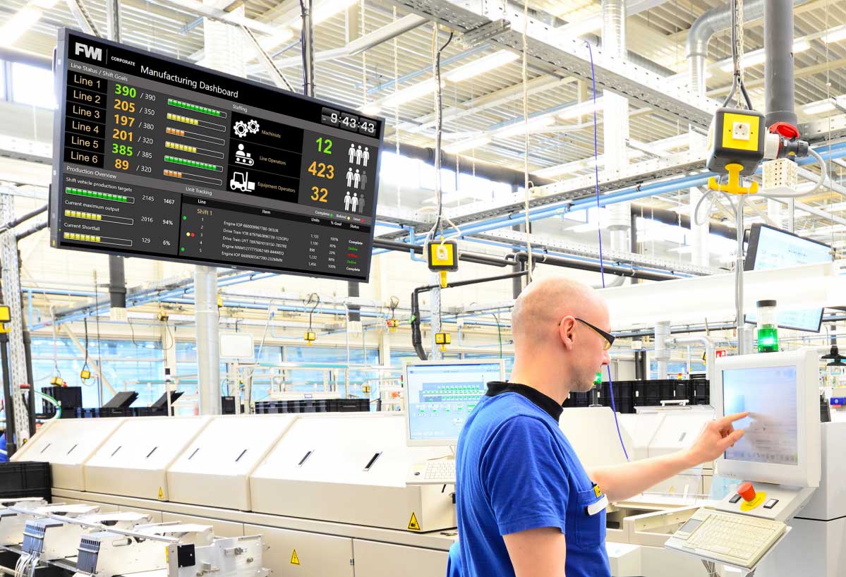 Cho dù họ đang sản xuất thiết bị gia dụng hay thực hiện các đơn đặt hàng trực tuyến, các cơ sở sản xuất và logistics thường là những nơi ồn ào và dựa vào cập nhật thông tin trực tiếp để hoạt động hiệu quả nhất có thể. Các màn hình sẽ được định vị cẩn thận – được điều chỉnh cho phù hợp với các kích thước của cơ sở – chuyển tiếp dữ liệu quan trọng trong thời gian thực, được nhập từ các hệ thống quản lý được kết nối. Biểu đồ động trực quan và thông tin số cung cấp ảnh chụp nhanh, ổn định về các KPI, thúc đẩy các quyết định điều hành và nhiệm vụ của nhân viên.